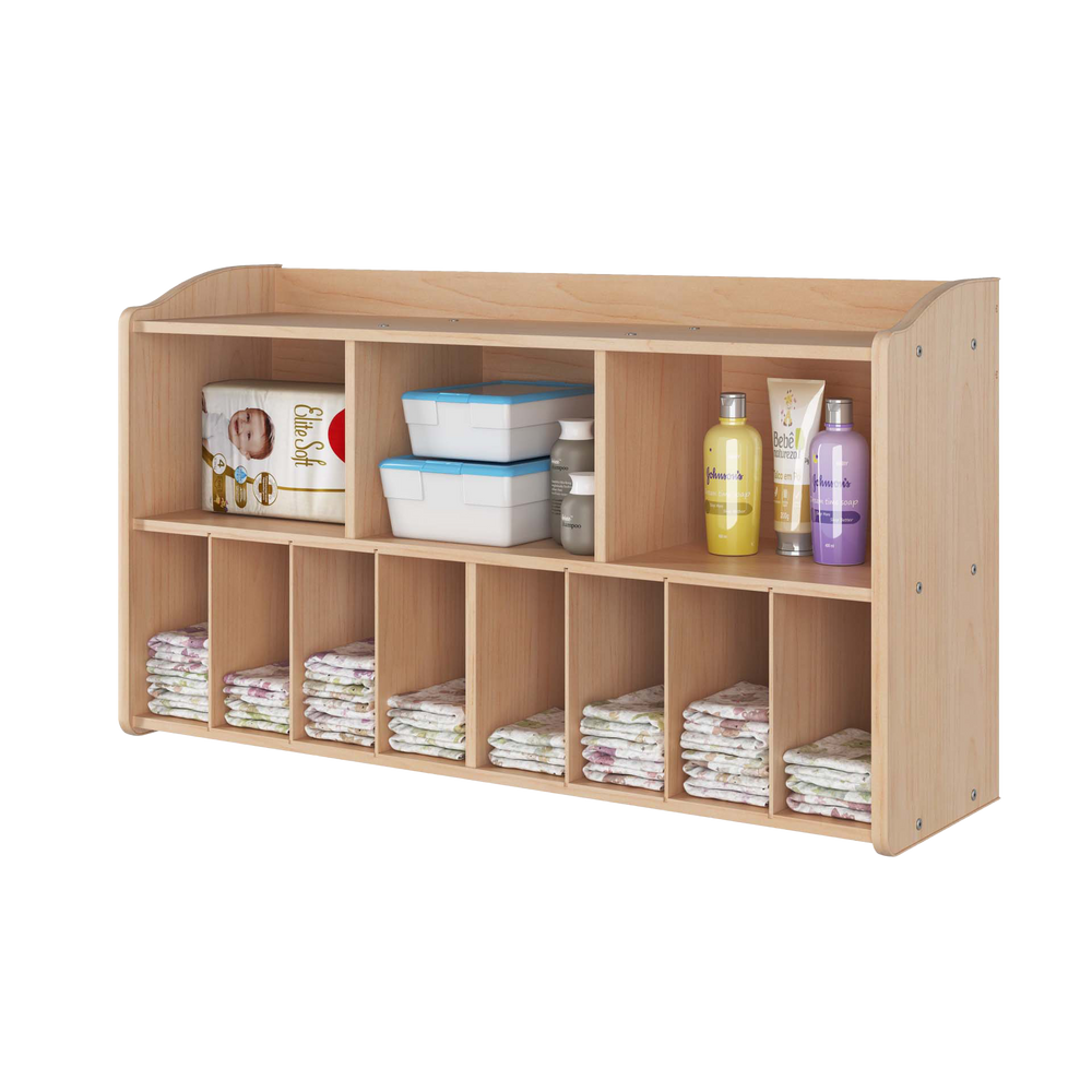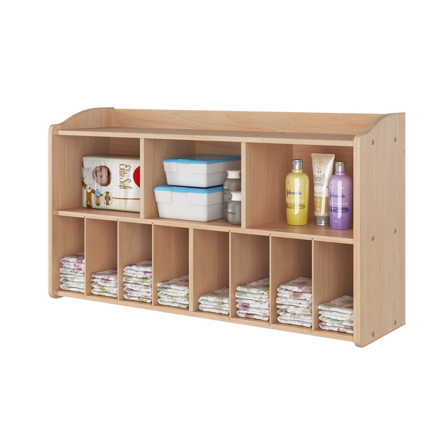This wall-mounted diaper organizer features 11 compartments for diapers, wipes, creams and more. Made from durable Baltic birch wood with a natural, easy-clean finish, it coordinates with the full Foundations changing table collection. Includes all mounting hardware for quick, secure installation.