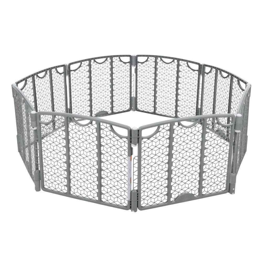 - SPREAD OUT: Provides a safe, spacious space for a child of 6-24 months of age to play — measures 34.5 sq ft at 28” tall; unique hinge design allows any panel to be a door access