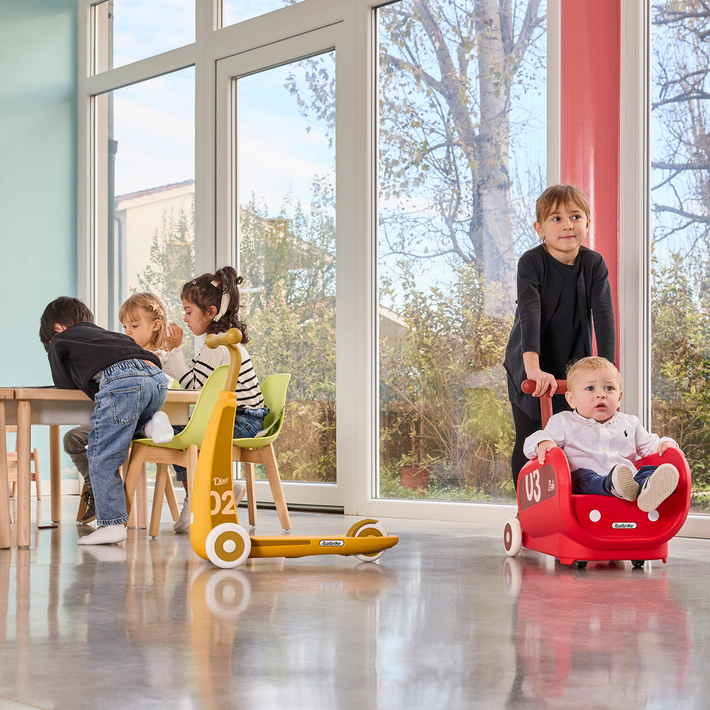 Italo is a small kids shopping cart with a sinuous design sliding safely on every surface, both indoors and outdoors. It is very silent thanks to large rubber-coated wheels. Italo the new Italtrike kids shopping cart helps to manage spaces, distances, movements and to coordinate children's walking. Suitable for children from 2 to 6 years old. #TheirFirstCart