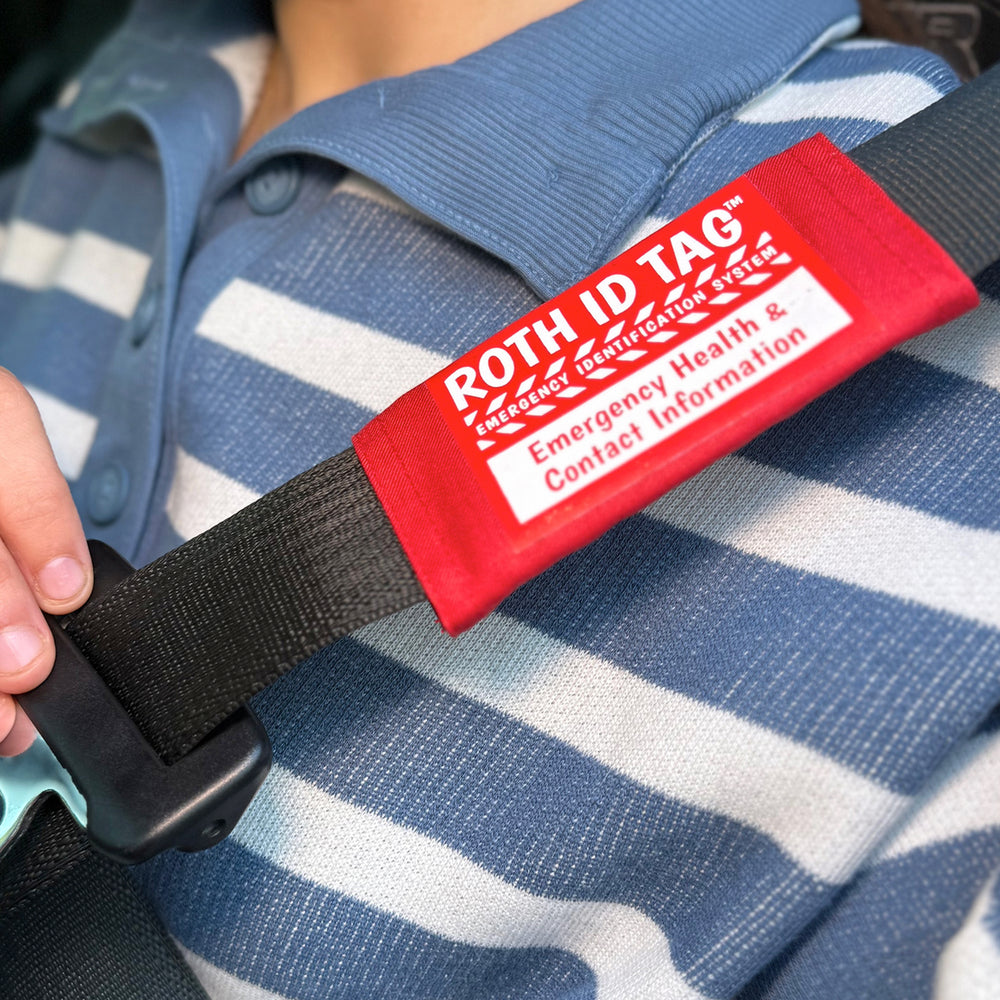 The ROTH ID TRAVELER TAG is an emergency identification system that can be used by older children out of car seats, adults, and everyone needing to carry emergency health & contact information. The tag includes room for users to write identifying information, medical information, and emergency contacts. In the event of an emergency, first responders locate the TRAVELER TAG and tear at the perforation to turn the tag into an emergency identification wristband. This reduces the risk of misinformation or loss of information in chaotic emergency situations.
