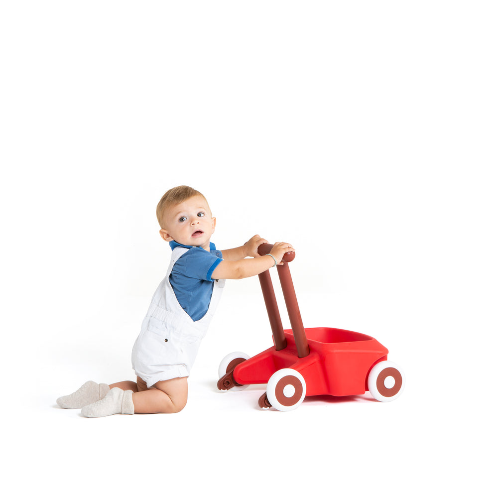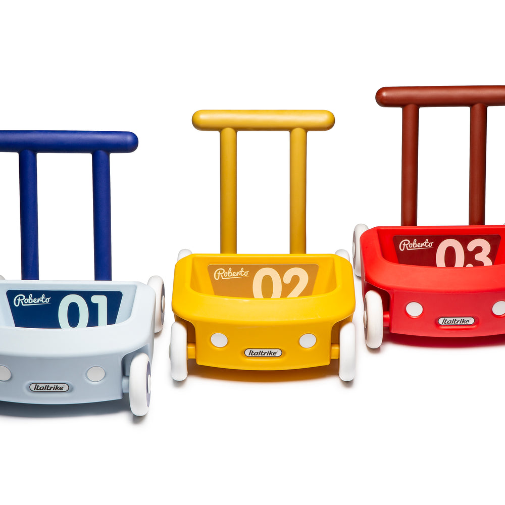 The Roberto Walker is suitable for use indoor and outdoor, Rounded shape and 2 rear balance levers prevent overturning, Rubber coated non-marking wheels, Rear wheels feature speed control clutch, Balance levers and clutch can be removed as your child grows.